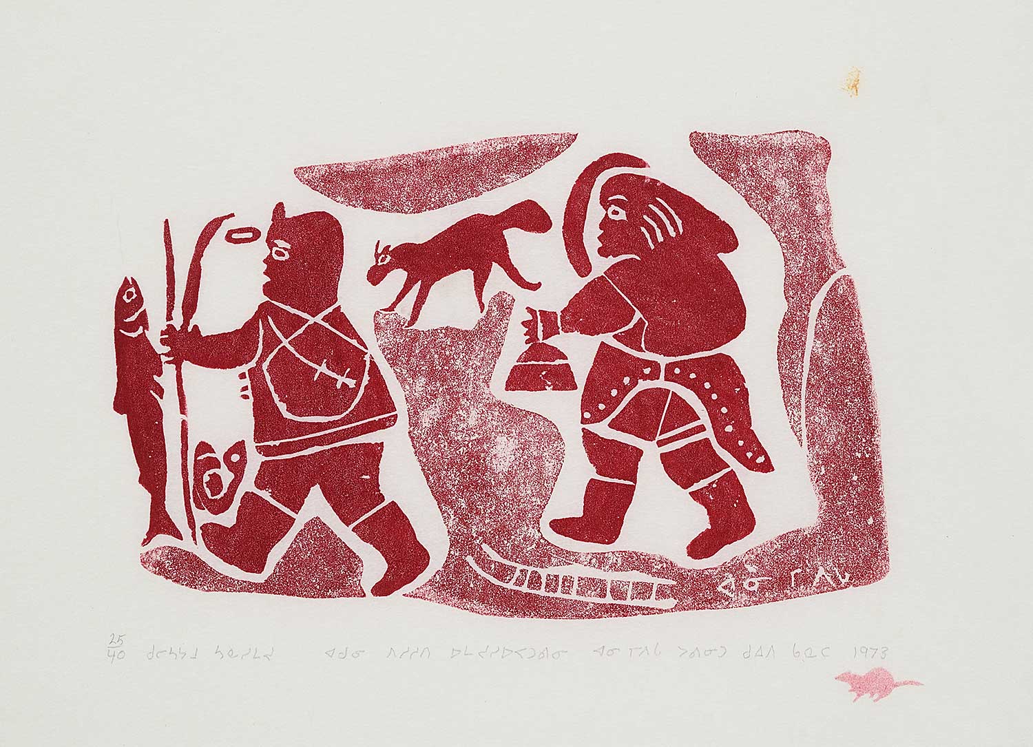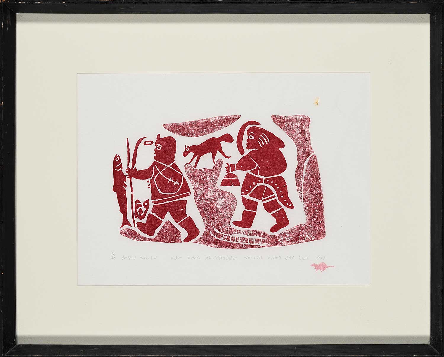 dated, numbered and inscribed with syllabics along bottom; Pangnirtung chop lower right; bears title on gallery label verso; framed with archival mat; handling marks on frame noted