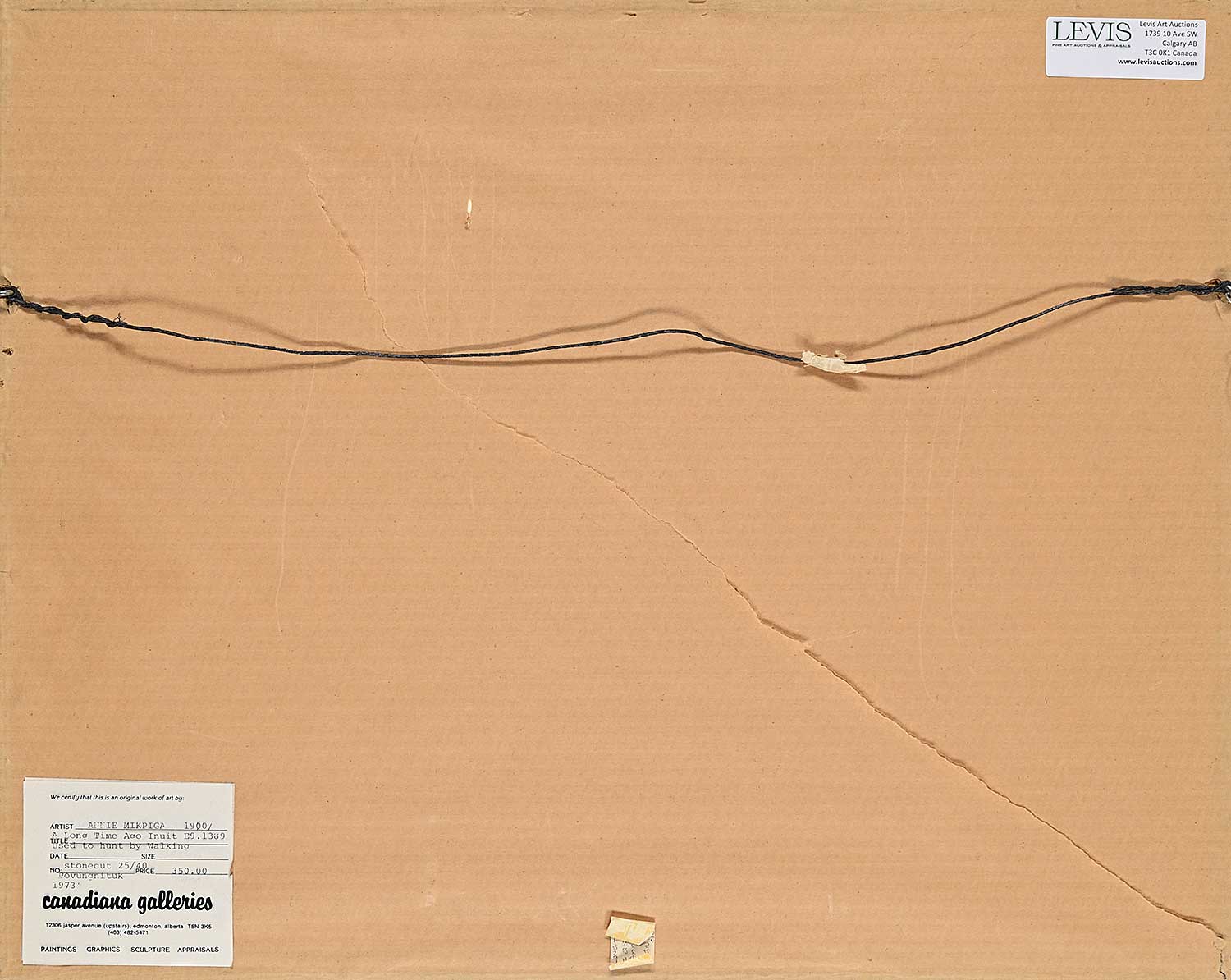 Canadiana Galleries, Edmonton, label verso