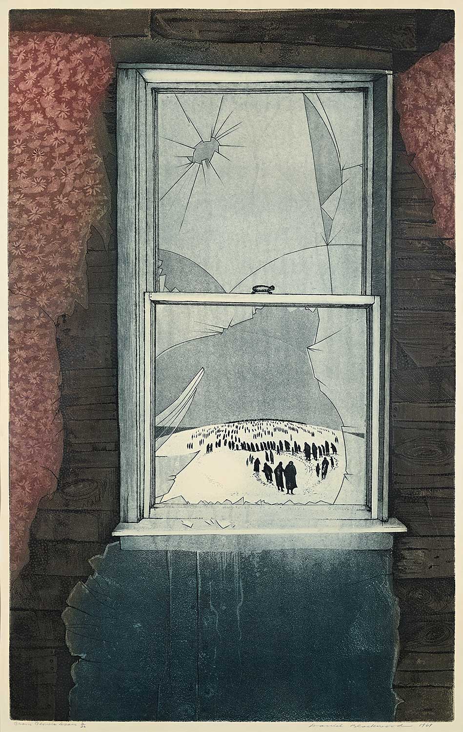 David Blackwood was born in 1941 in Wesleyville, Newfoundland as the son to Captain Edward and Molly Blackwood, a family with a long seafaring history. In 1959, he graduated from Wesleyville Memorial High School and received a Government of Newfoundland Centennial Scholarship to study at the Ontario College of Art. Blackwood graduates from the Ontario College of Art in 1963 and was appointed as art master at Trinity College School in Port Hope, Ontario. In 1964, the National Gallery of Canada purchased Blackwood’s first etching, The Search Party for its Biennial of Canadian Prints. In 1969, he became artist in residence at Erindale College, University of Toronto, in Mississauga. His works were exhibited throughout Canada and was awarded the Order of Canada in 1993, in recognition of his contributions to the cultural life and the heritage of Canada. In 2000, David and Anita Blackwood gifted a major collection of Blackwood prints which gave Art Gallery of Ontario the collection of record for Blackwood’s work and created a Blackwood Research Centre.
