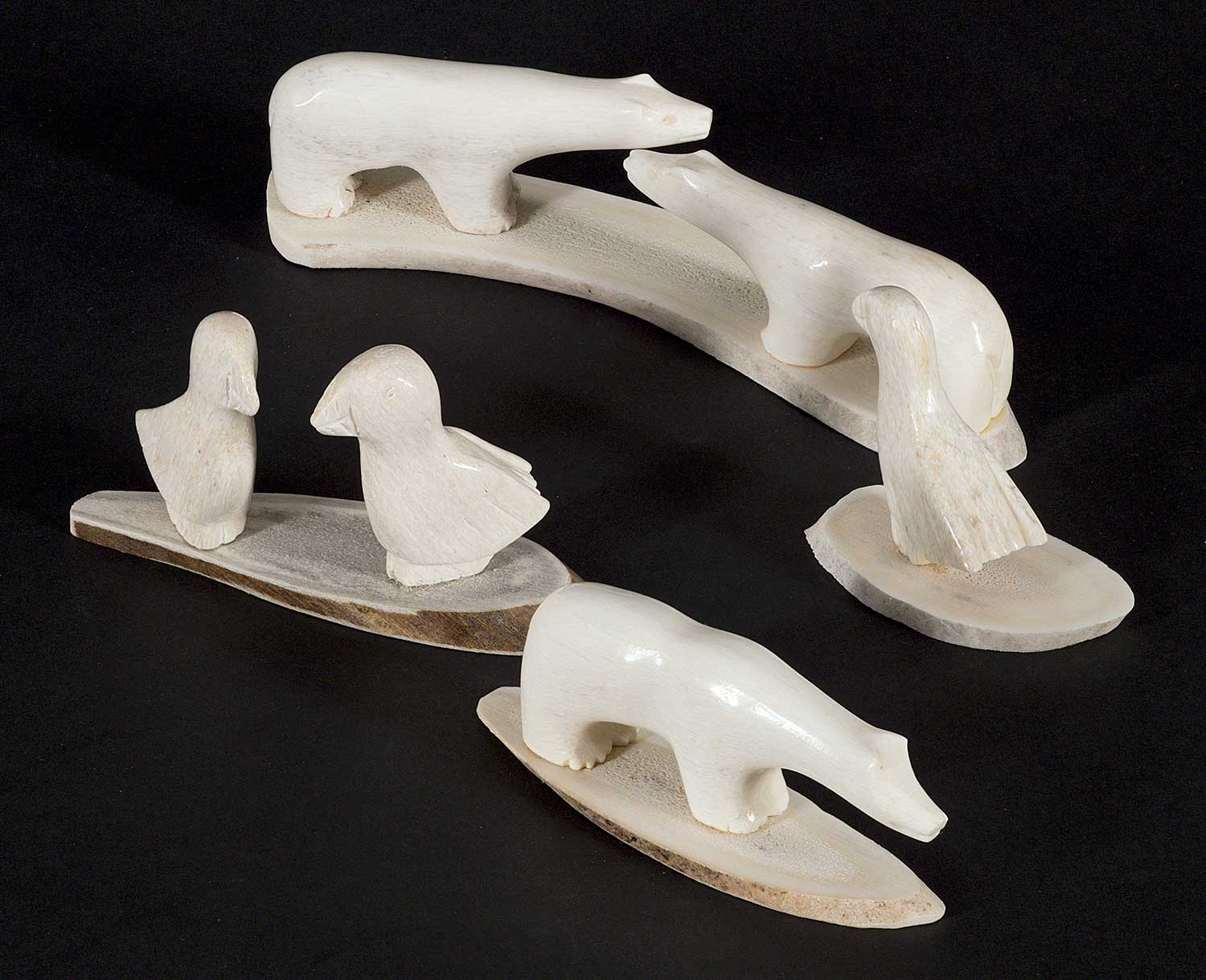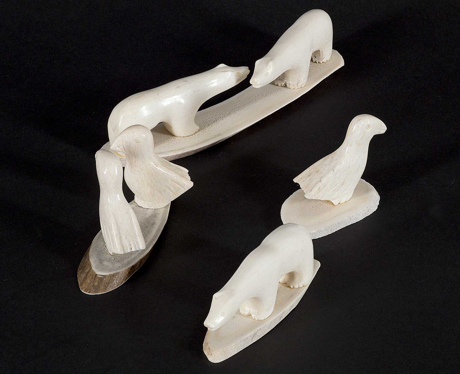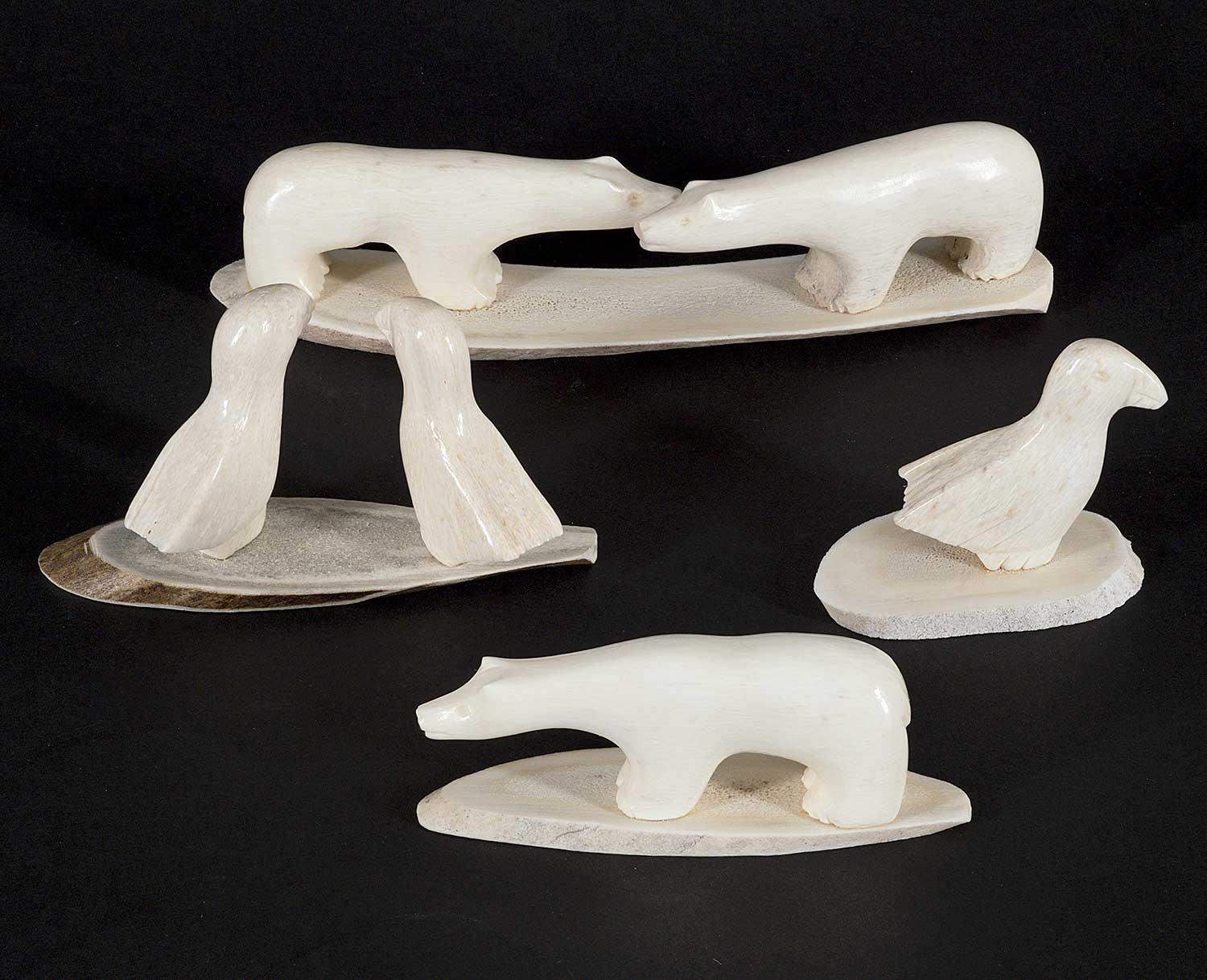 LOT OF FOUR; each inscribed 'Crow' on bottom; 'Untitled - Two Bears' measures [1 x 5 x 1.25 in.], 'Untitled - Two Birds' measures [1.75 x 3.25 x 1.5 in.], 'Untitled - One Bear' measures [1 x 3 x 1 in.] and 'Untitled - One Bird' measures [1.5 x 2 x 1 in.]