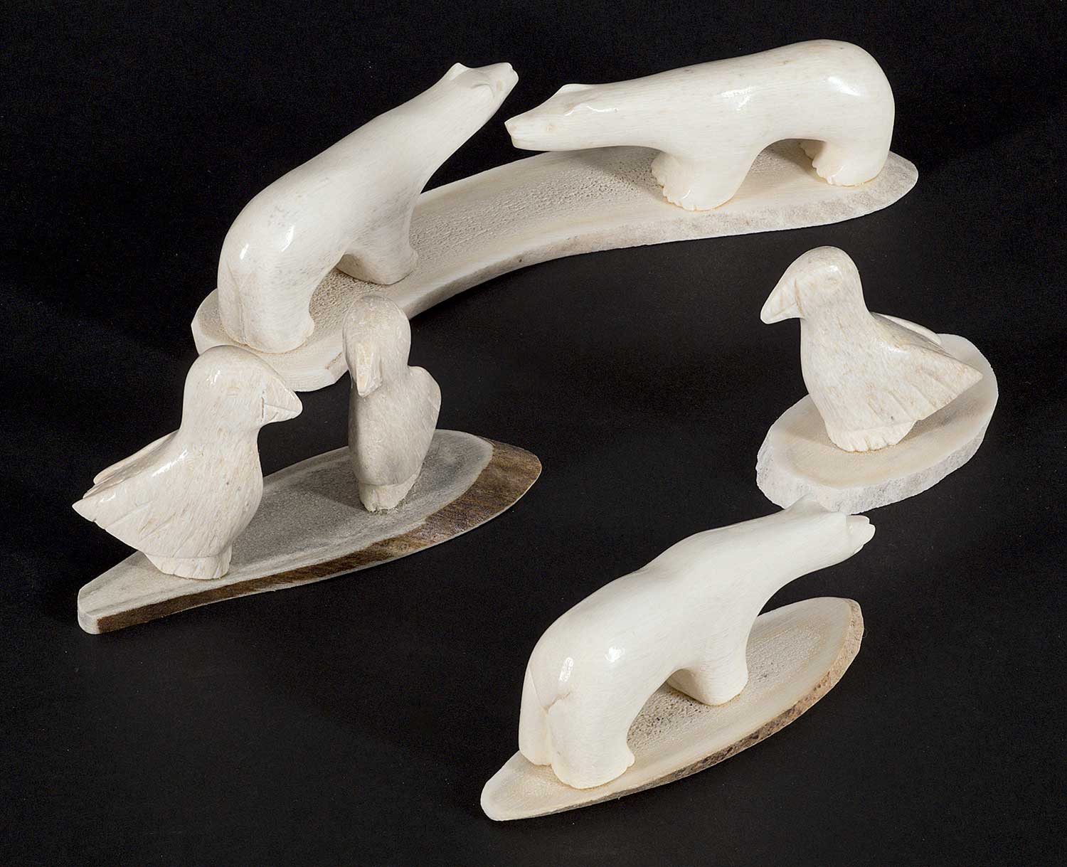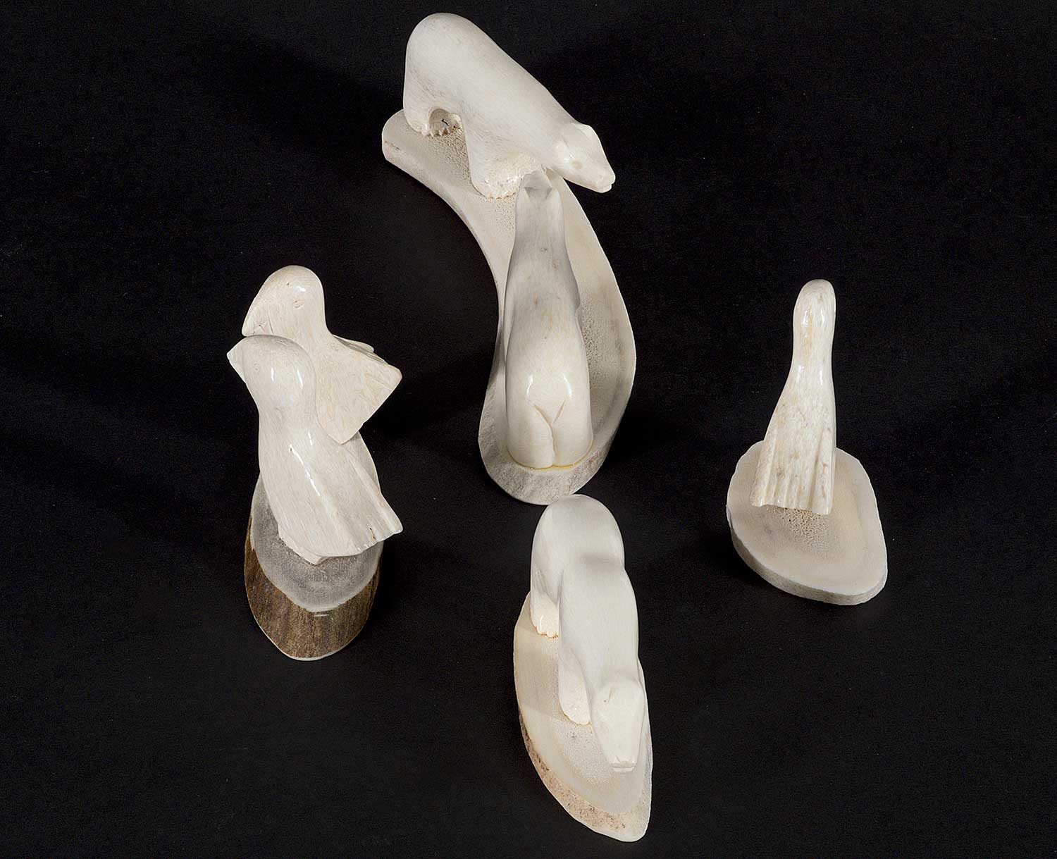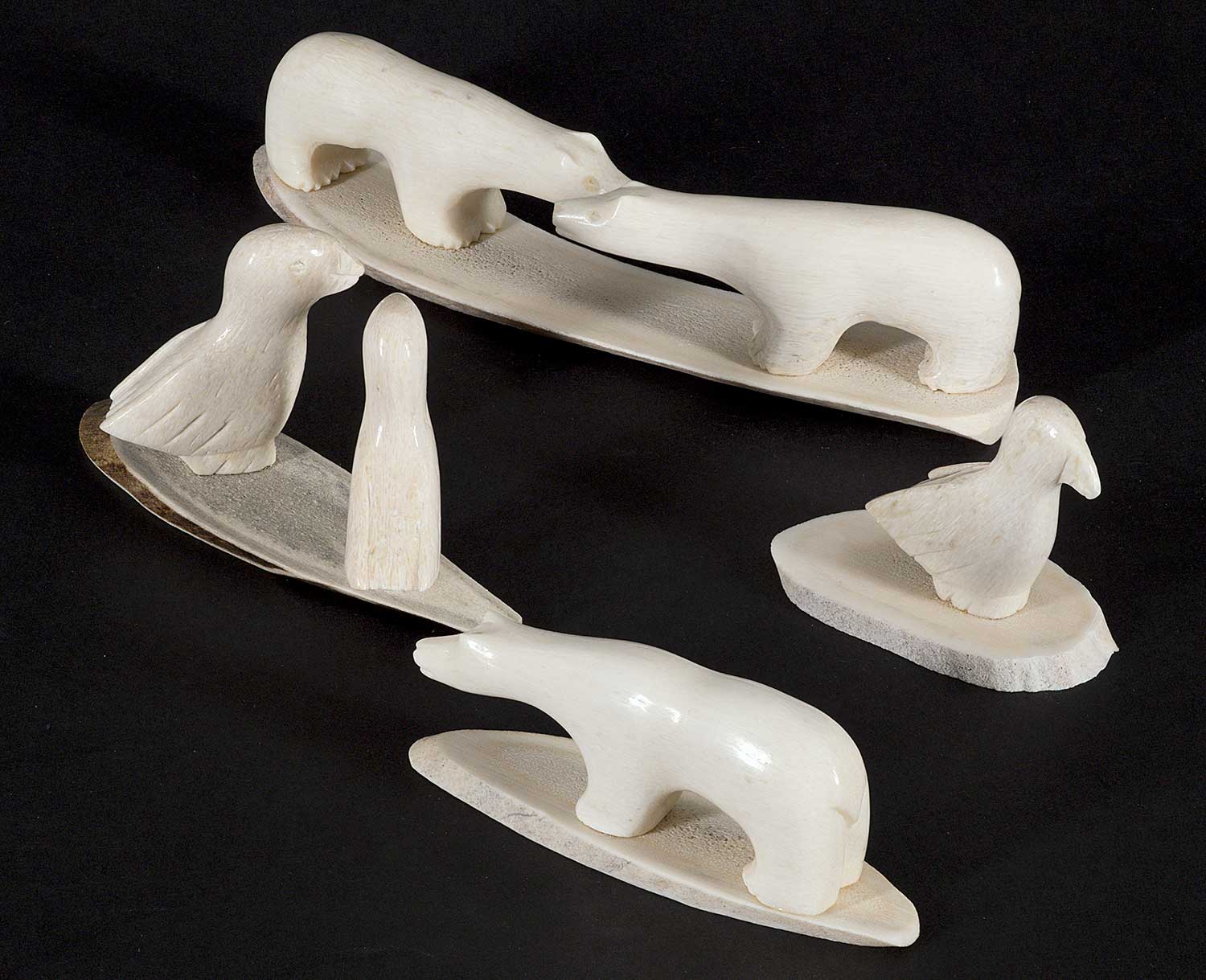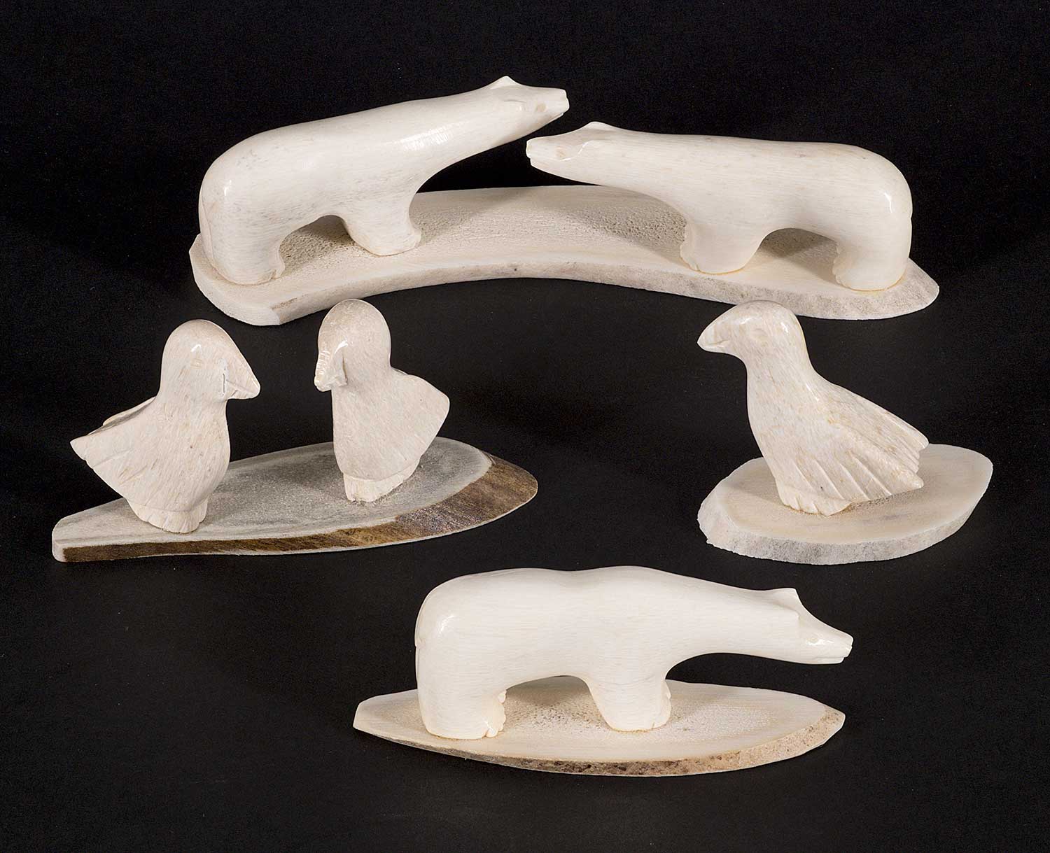 LOT OF FOUR; each inscribed 'Crow' on bottom; 'Untitled - Two Bears' measures [1 x 5 x 1.25 in.], 'Untitled - Two Birds' measures [1.75 x 3.25 x 1.5 in.], 'Untitled - One Bear' measures [1 x 3 x 1 in.] and 'Untitled - One Bird' measures [1.5 x 2 x 1 in.]