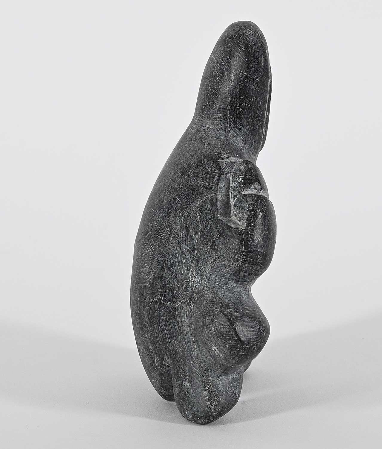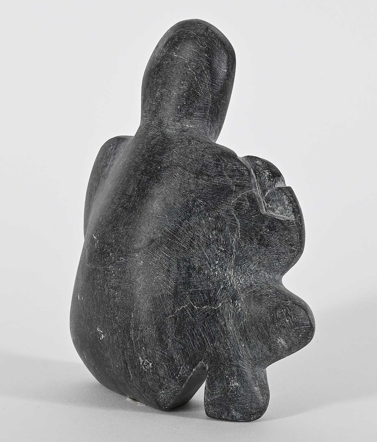 bears artist's name on label attached to bottom; inscribed with syllabics on bottom; minor handling marks noted