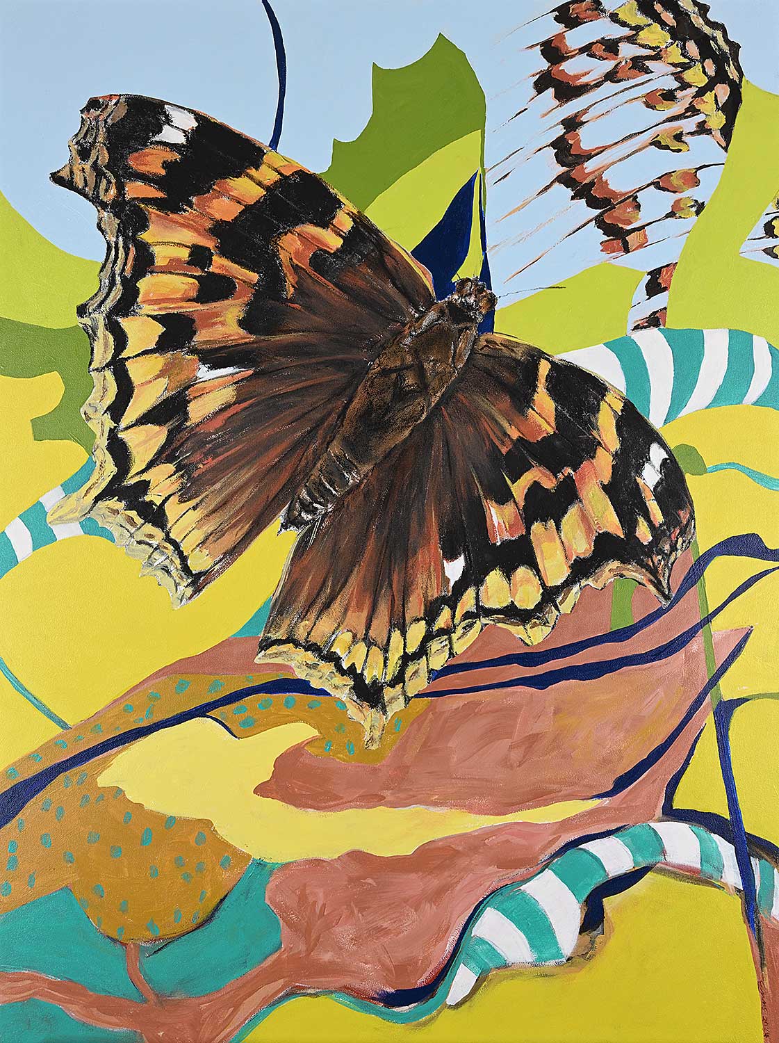 according to the artist 'I have long considered my work the art of conservation. This painting is from the series Vanishing Bugs, 2025. With human accelerated climate change the insect poplulation world wide is diminishing. The series would not have been possible without the loan of photos from Rod Green, a naturalist and well-known art aficionado.'
