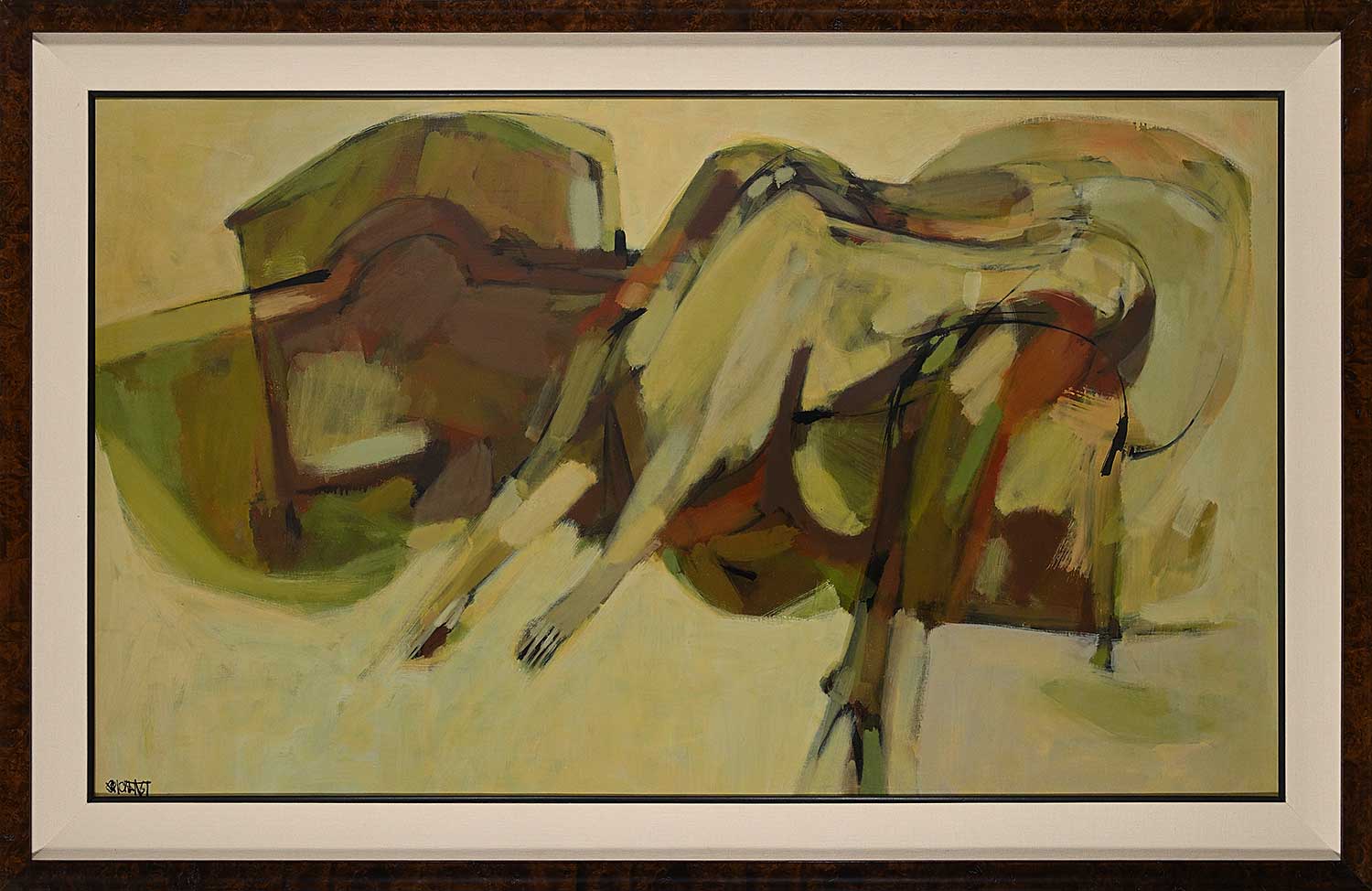 signed and dated lower left; framed; some very minor cracking noted throughout