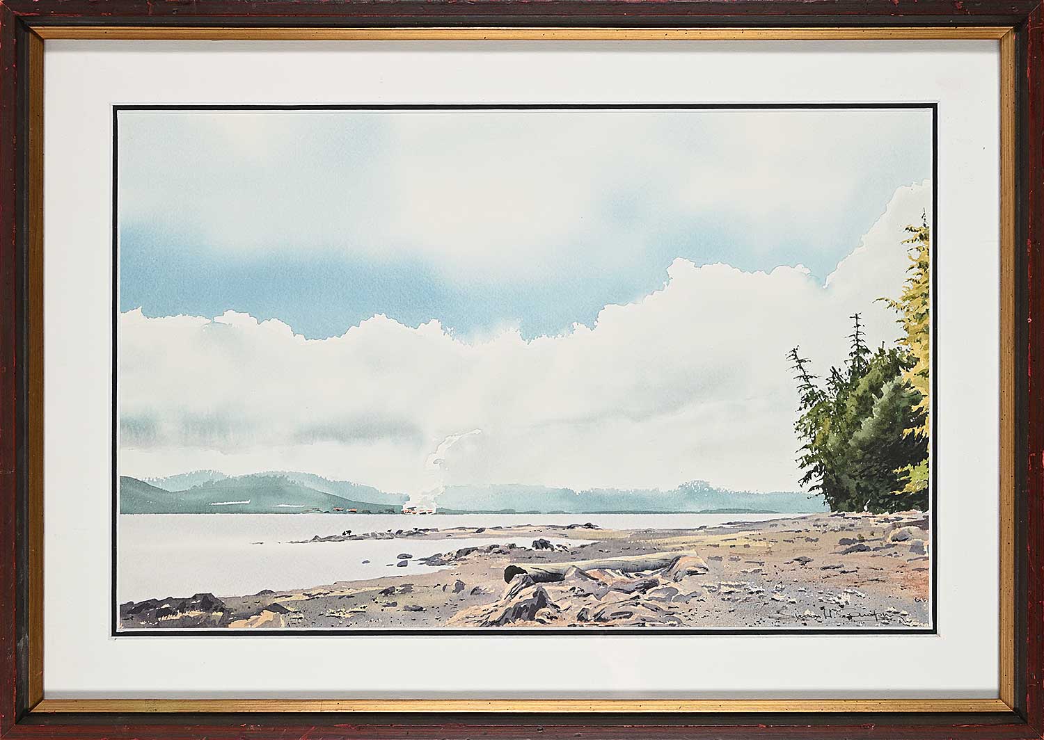 signed lower right; framed with archival mat; some handling marks on frame noted