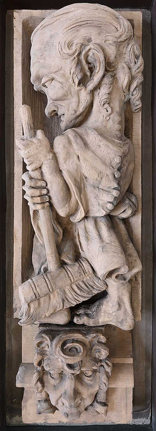 The Southam Building on the corner of 7th Ave and 1st Street SW in Calgary was built in 1913. It later became known as "The Herald Building" after its most prominent tenant, the Calgary Herald newspaper. It was an impressive structure ornamented with many grotesques. (A gargoyle is a decorated waterspout that projects from a roof and carries rainwater away from the walls of a building, protecting it from damage. A grotesque is a decorative carving that has no functional architectural purpose.) These grotesques were designed by Mark Villars Marshall and produced by Royal Doulton at their Lambeth Studio in 1912. The building was demolished in 1972 due to structural problems that could not be amended.