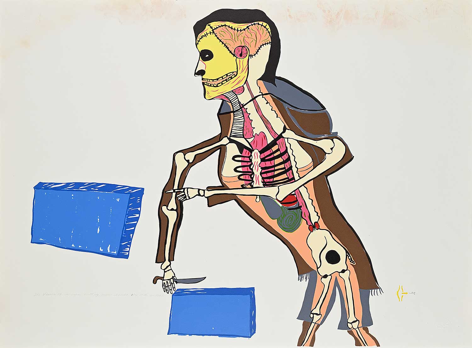 signed, titled, dated and numbered along bottom; Baker Lake chop lower right; unframed; water damage along top noted; very minor handling marks noted throughout