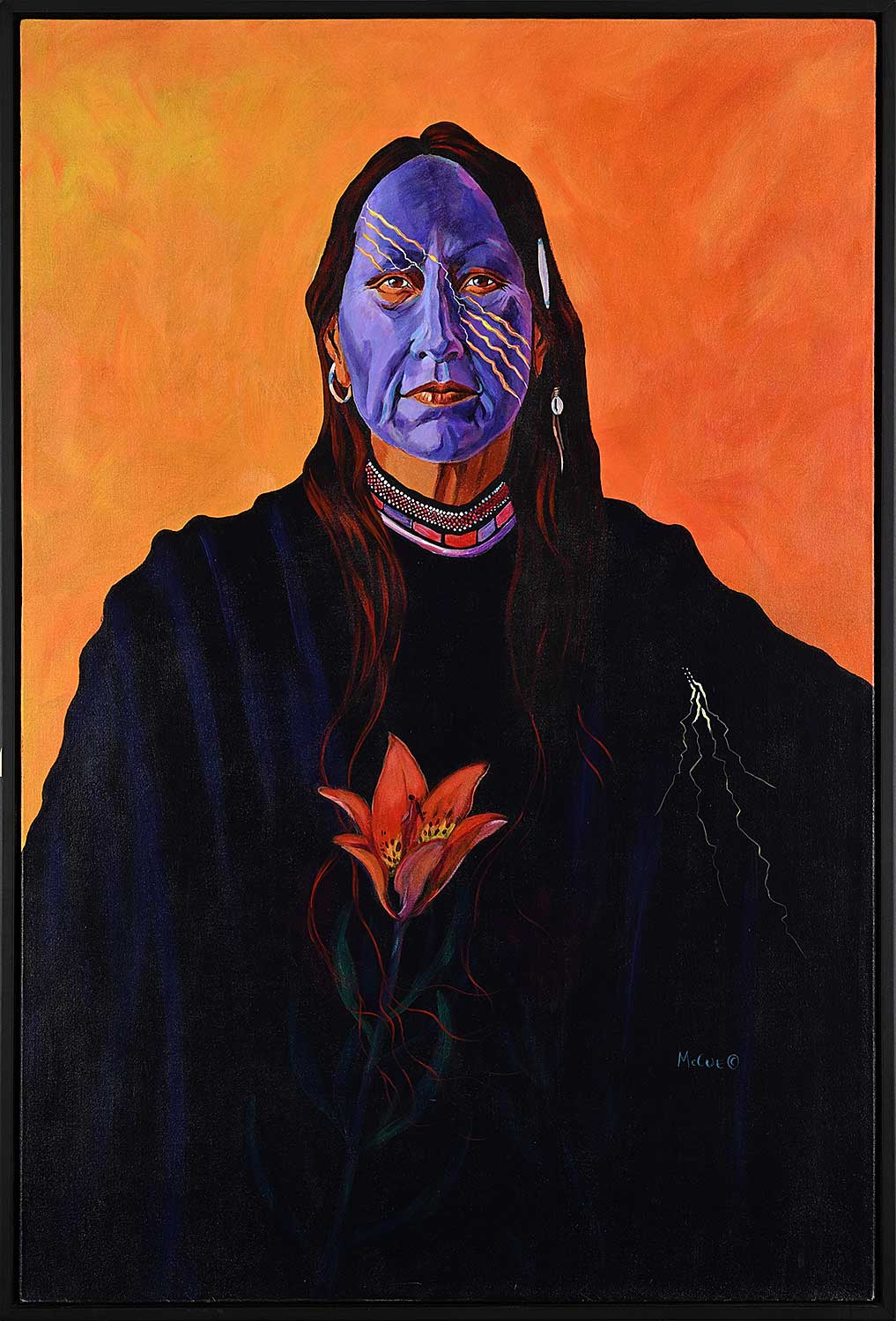 An Ojibway artist from Ontario's Curve Lake First Nation in southeastern Ontario, McCue was a self-taught painter who learned from his cousin, Ojibway artist Arthur Shilling. McCue spent 19 years training substance abuse workers in Indigenous communities across Canada; during that time, he worked as a freelance illustrator, producing posters, book covers and illustrations. In 1976, he moved to Alberta, where he lived for the rest of his life. - Galleries West